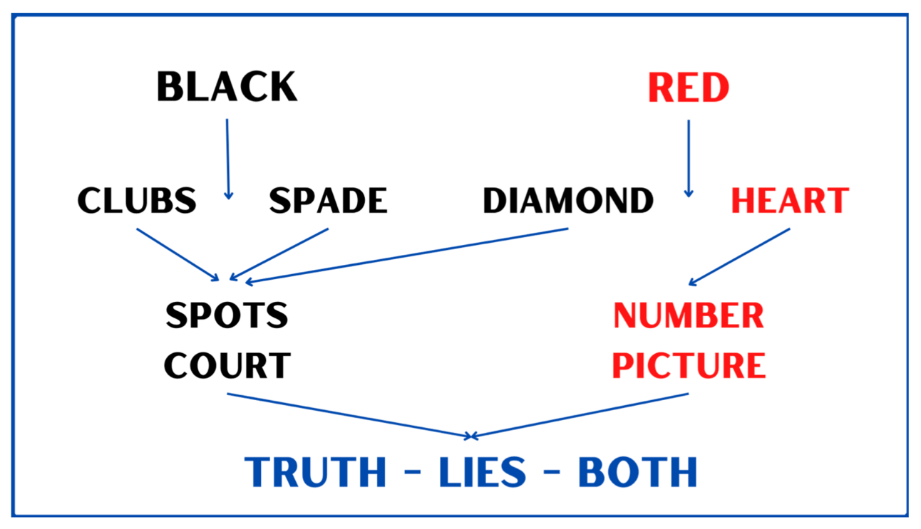 “Let’s give you another chance to lie or tell the truth. Was your card a court card or did it have spots?” You spell out the answer, dealing more cards to the table.