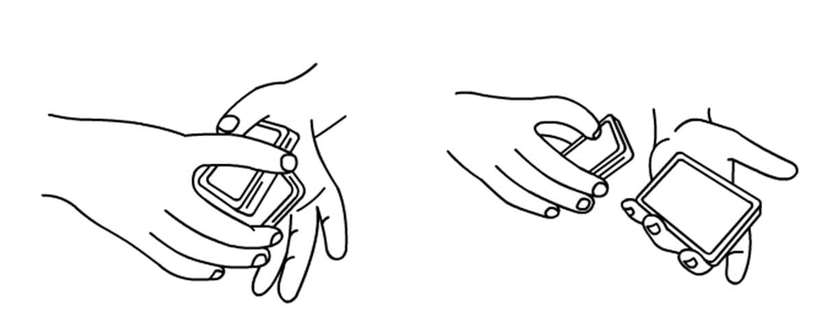 Spread the deck face down between your hands and have a card selected from the upper portion. Square the deck and, as the spectator looks at and remembers the card, swing cut the upper half into your left hand (Figure 2). Have the spectator replace the memorized card on top of the left-hand portion. Drop the right-hand packet on top and place the deck on the table.